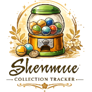 Every collectible in Shenmue: gacha capsules (Non-Sega, Excited Sega World, Port, QTE, Sonic, Vehicle, Virtua Fighter, Virtua Fighter Kids), traded capsule toys, arcade prizes, forklift race trophies, lucky dip prizes, slot machine rewards, move scrolls, and cassette tapes.
